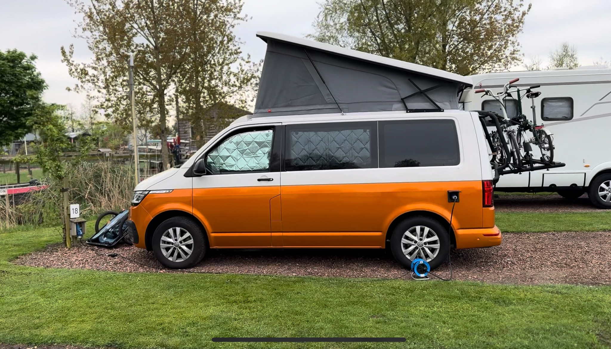 • 💸 Cena: 28 € / noc (Multivan se 3 dětmi, včetně elektřiny a sprchy)